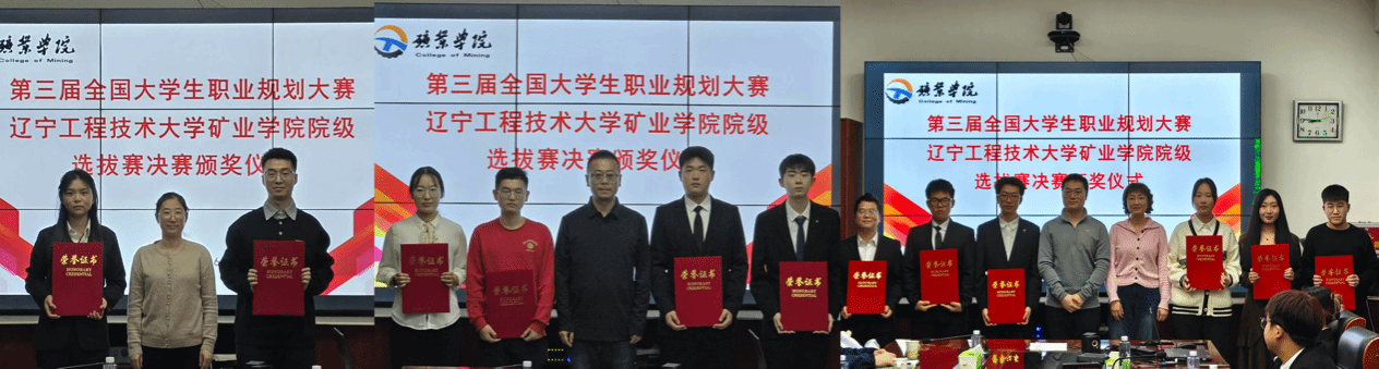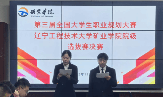 为加强学生生涯教育,提升就业能力,辽宁工程技术大学矿业学院于2025年11月27日成功举办第三届全国大学生职业规划大赛院内选拔赛。大赛以“筑梦青春志在四方,规划启航职引未来”为主题,全院学生踊跃参加。