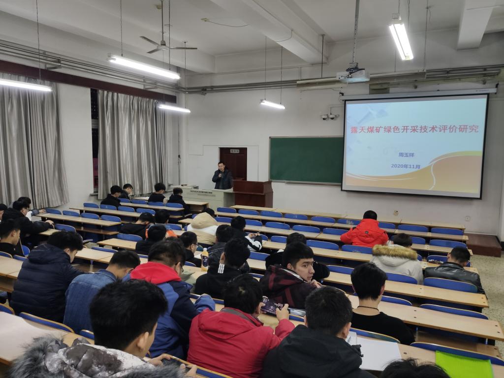 11月23日晚,矿业学院于博雅楼401开展大学生课外科研训练讲座活动--“煤矿智能化开采技术现状与发展趋势”及技能训练讲座,本次讲座由周玉祥老师担任主讲人,全院18、19级采矿工程专业同学积极参加。