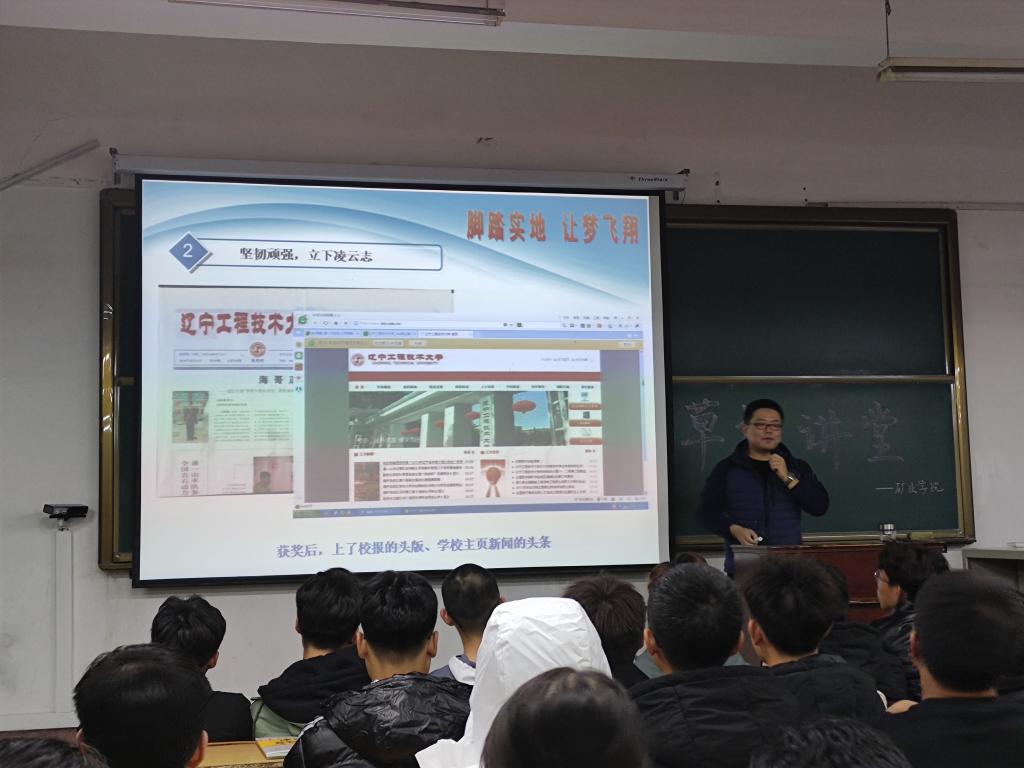 荣海老师以“脚踏实地、让梦飞翔”为主题开展讲座。荣海老师在大学期间曾担任校学生会副主席、党支部纪检委员、班长等各项职务,曾获辽宁省华育十佳大学生、辽宁省优秀毕业生党员等荣誉,攻读硕士、博士研究生期间均获得国家奖学金。留校任教后获评辽宁省“百千万人才工程”万层次人选,并已获得国家公派留学资格,目前为矿业学院硕士生导师,学术兼职中国岩石力学与工程学会会员及《Geotechnical and Geological Engineering》(GEGE)等学术期刊审稿专家。