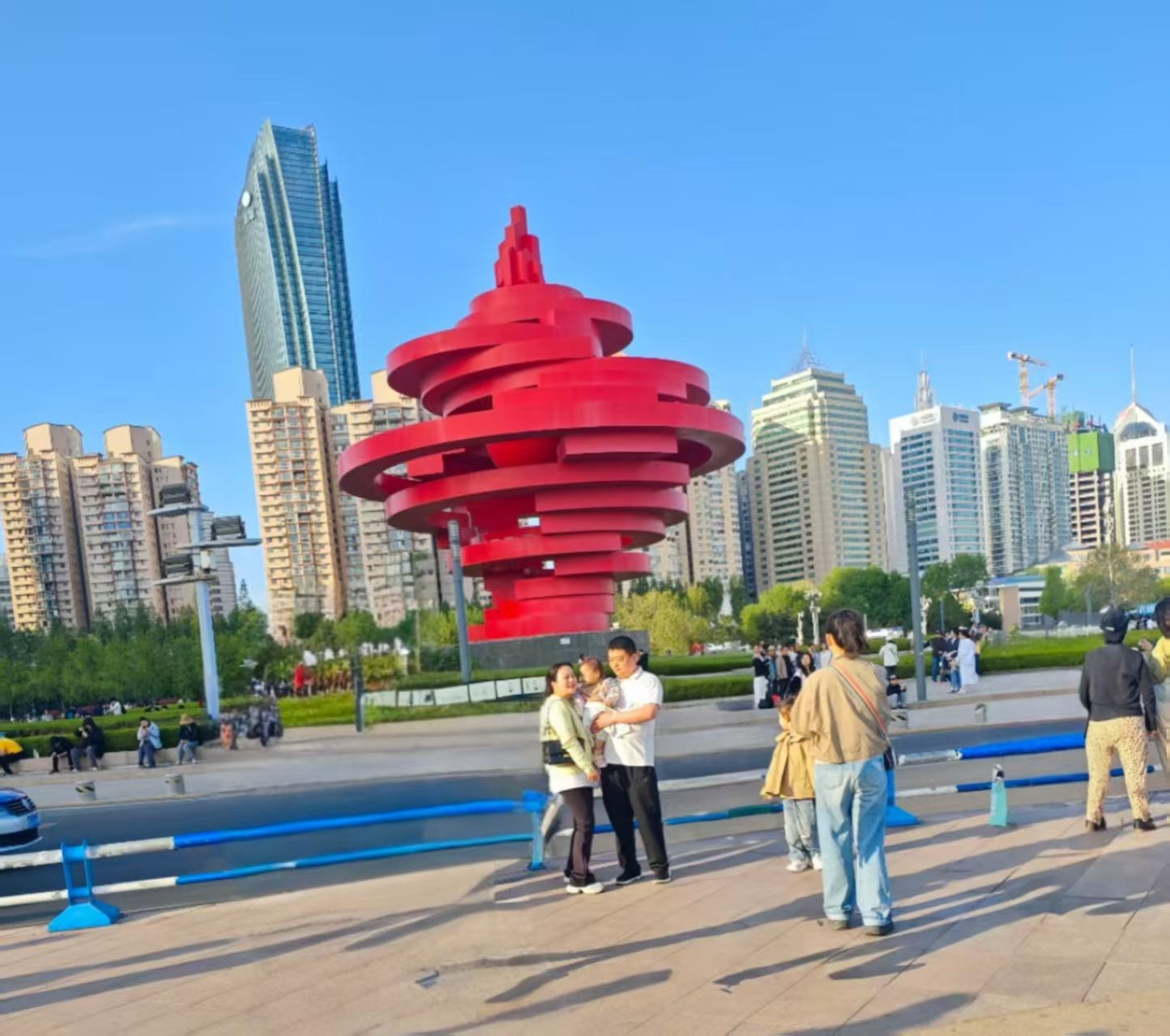 五四广场的“五月的风”雕塑如燃烧的火炬,在海风中舞动百年热血。喷泉与海浪交织成时代的赞歌,砖石仿佛低语往昔风云。这里是爱国精神的象征,激励我们传承先辈奋斗之志,在新征程中勇立潮头,为城市与国家的发展注入青春能量。